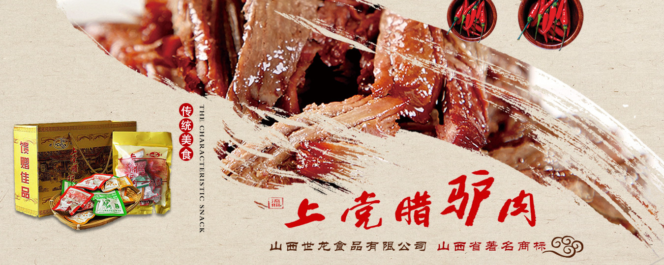 山西世龍食品有限公司是以“世龍”牌上黨臘驢肉系列產(chǎn)品為主導(dǎo),集科研開發(fā)、良種繁育、基地建設(shè)、生產(chǎn)加工、市場(chǎng)營銷于一體的農(nóng)業(yè)產(chǎn)業(yè)化國家重點(diǎn)龍頭企業(yè)、全國農(nóng)業(yè)標(biāo)準(zhǔn)化示范區(qū)、全國食品行業(yè)優(yōu)秀龍頭企業(yè)、山西省農(nóng)業(yè)產(chǎn)業(yè)化重點(diǎn)龍頭企業(yè)、山西省農(nóng)產(chǎn)品加工“513”工程單位、山西省帶動(dòng)貧困地區(qū)基地建設(shè)重點(diǎn)龍頭企業(yè)、山西省民營畜牧業(yè)示范基地、山西省質(zhì)量信譽(yù)AAA級(jí)單位、山西省重合同守信用單位、山西省消費(fèi)者協(xié)會(huì)誠信單位、山西省民營科技企業(yè)。